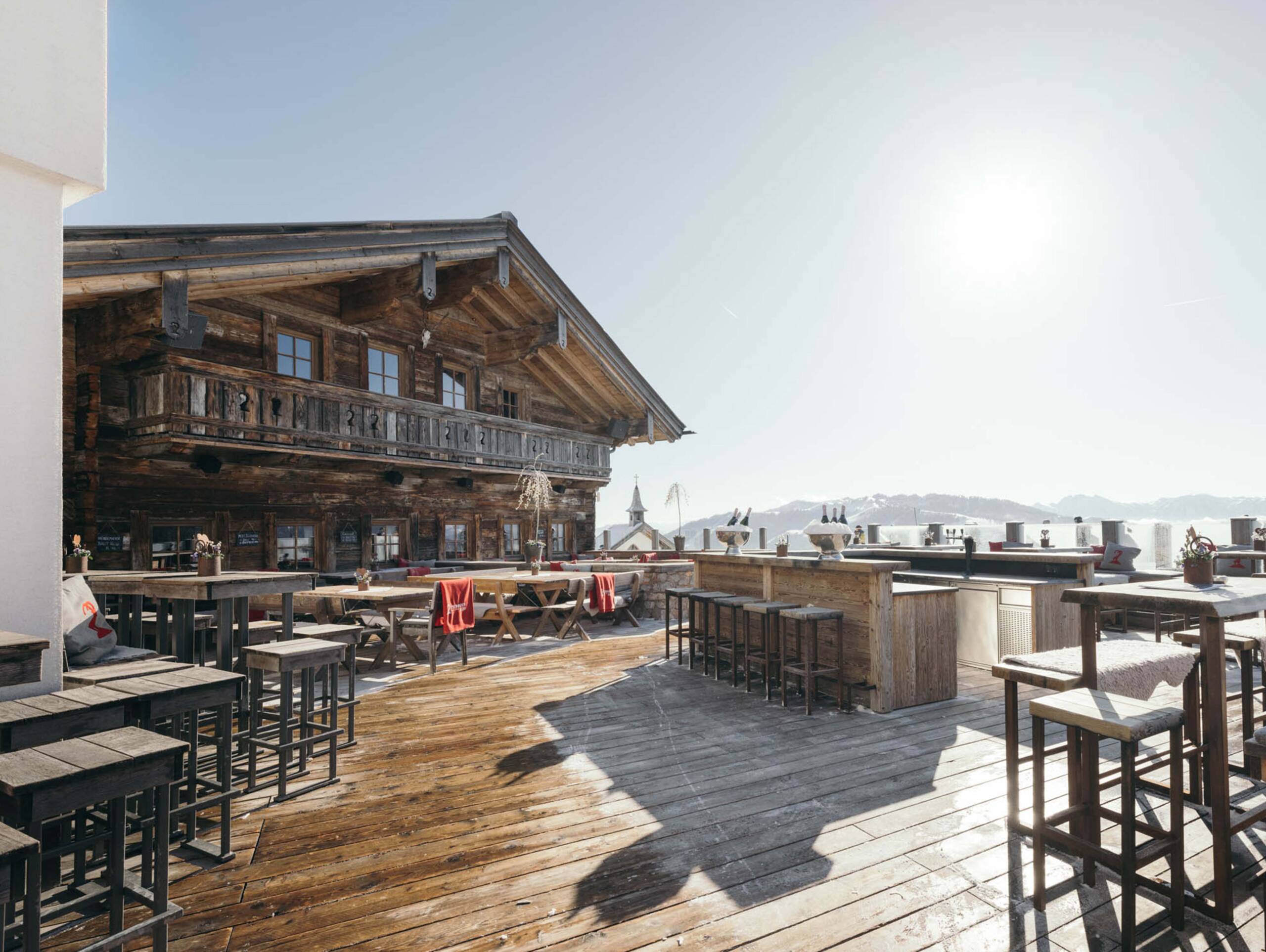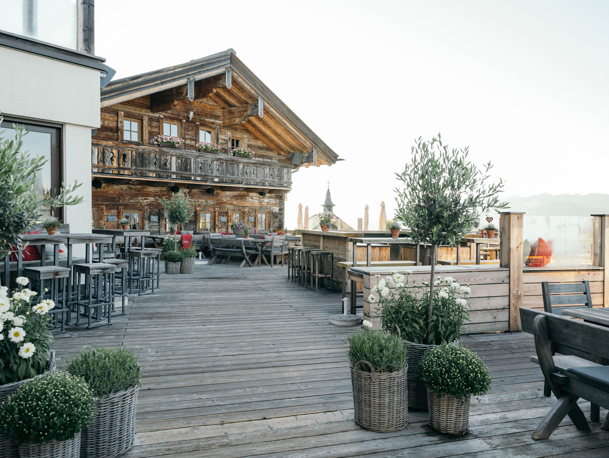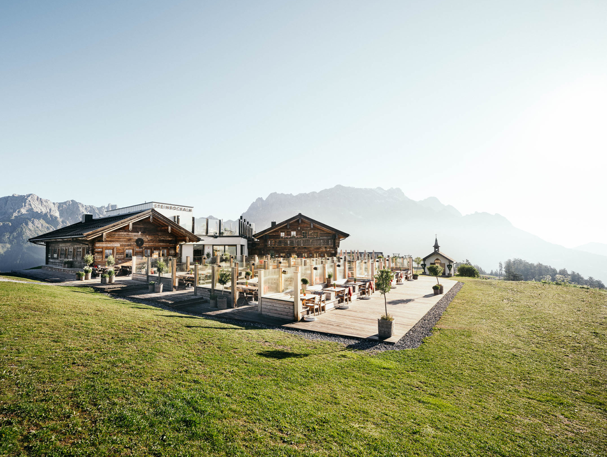 Hoch oben am Hochmais, auf 1.634m Seehöhe liegt die Steinbock Alm, mit imposantem Blick auf das Hochkönigmassiv und die Pinzgauer Grasberge.