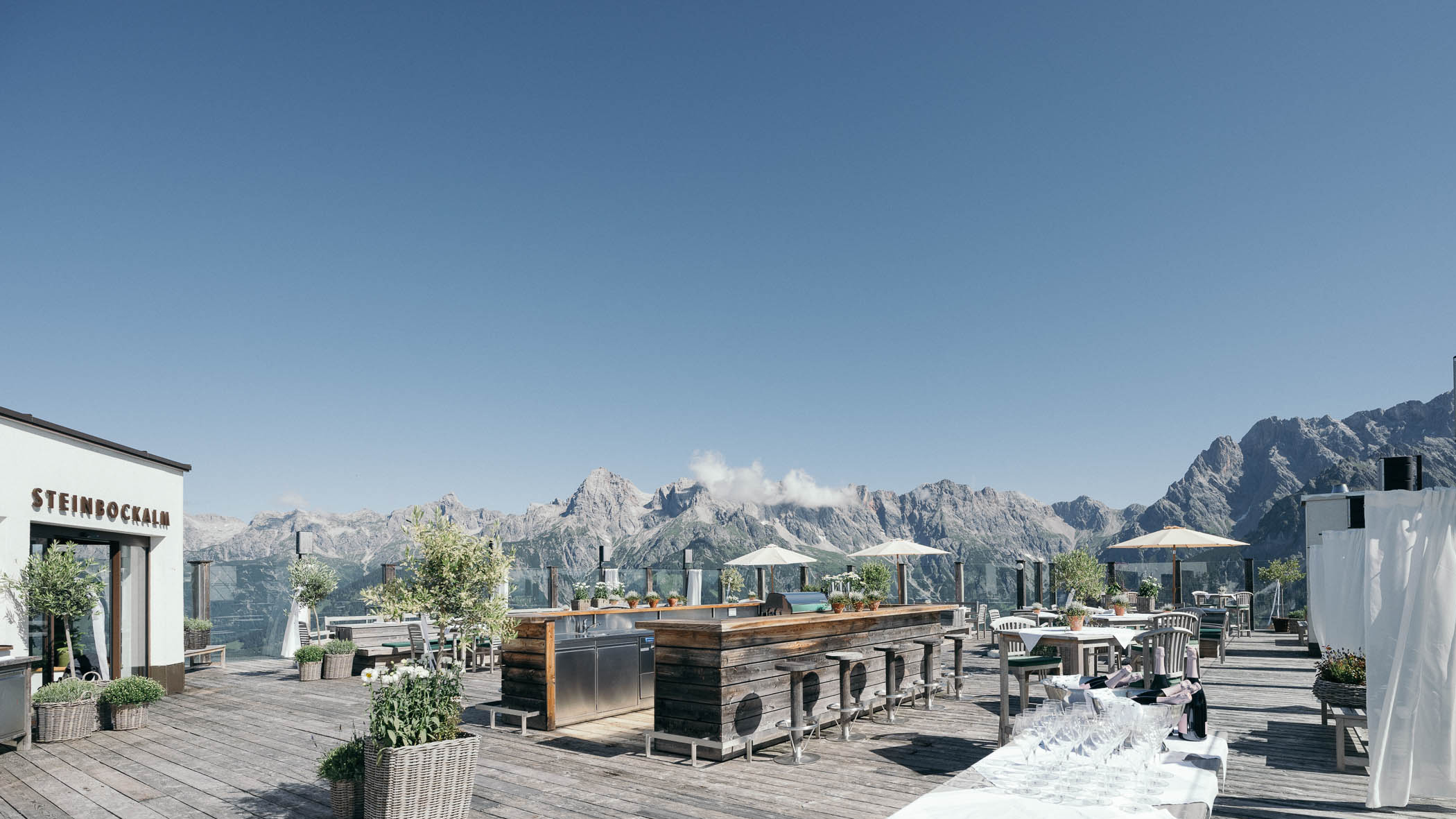 Come on in! The Steinbock Alm is more than just a location! Say ‘I do’ in front of the Steinbock Alm chapel, the welcome Rezeption will be held on on the beautiful 360-degree roof top terrace with a fantastic view of the Hochkönig massiv. The Bergstube and Almstube offer the perfect setting for dinner. Dancing and celebrations take place in the bar/panorama lounge area. Come on in and enjoy your tour of Hochkönig’s prime location!